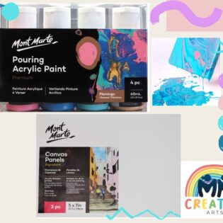 Pouring Paint (Flamingo)+ Canvas Panels Pack 3 12.7×17.8cm